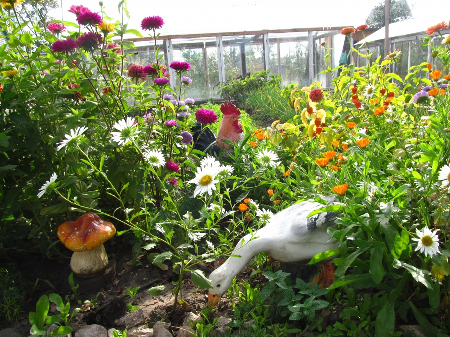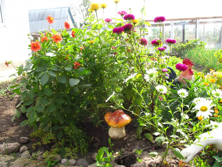 На даче постепенно пустеет. Урожай весь собран. Цветы тоже практически все высохли. Остались самые стойкие ))