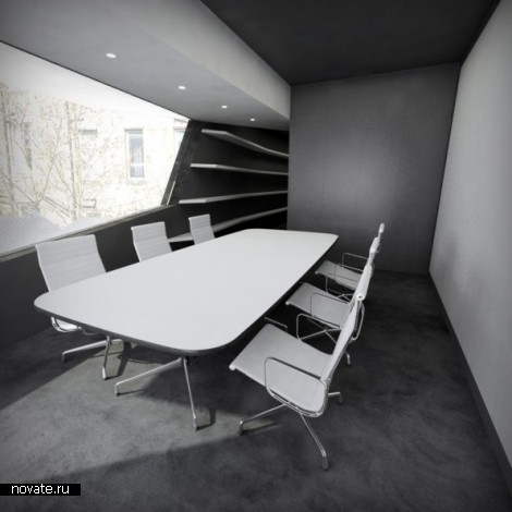 Это динамичное дополнение поместилось, можно сказать, в узкой «щели», всего лишь 4,5 метров шириной и 30 метров длиной, расположенной между двумя старыми зданиями, построенными в стиле модерн.