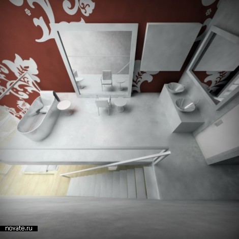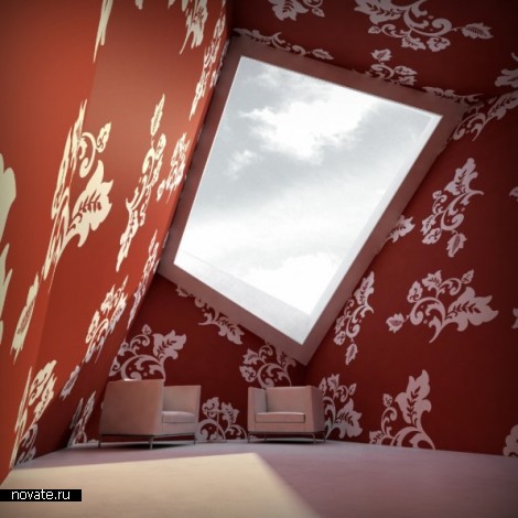 Цветочный узор на ярких обоях некоторых стен - визуальная связь всех трех этажей, смелое вмешательство цвета в «пустоту» холста всего остального интерьера.