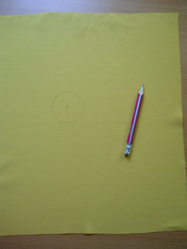 2. Берем подходящую ткань размером 30 х 30 см. Обводим кружок на изнаночной стороне ткани19 раз на расстоянии 5 мм друг от друга. Первый кружок обводим в центре ткани, затем делаем второй ряд кружков, затем третий ряд. Кружочки обязательно нумеруем, чтобы потом не запутаться.