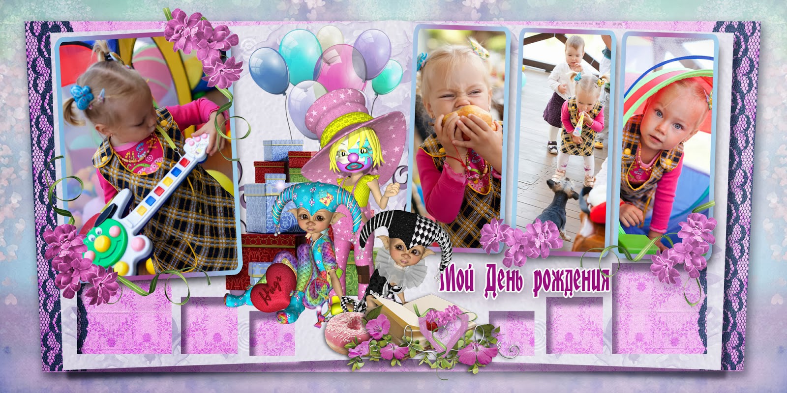 Разворот для книги про крещещение (поиграла с цветом, добавила клипарт изменила размер фото и добавила их кол-во)