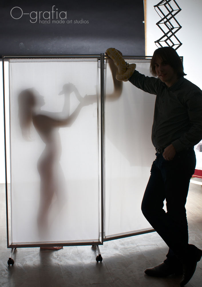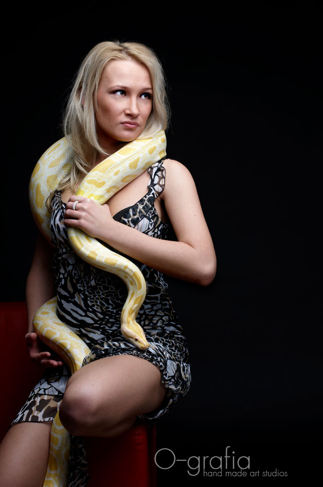 Вы будете очень удивлены наверняка тем, что и наш фотограф и модель до этой съемки дико боялись змей, ящериц, и прочих ползучих гадов. Но после общения с Никой ( да да так зовут эту желтую змею ), и с Андреем хозяином этого животного - страх у всей нашей съемочной группы полностью улетучился.