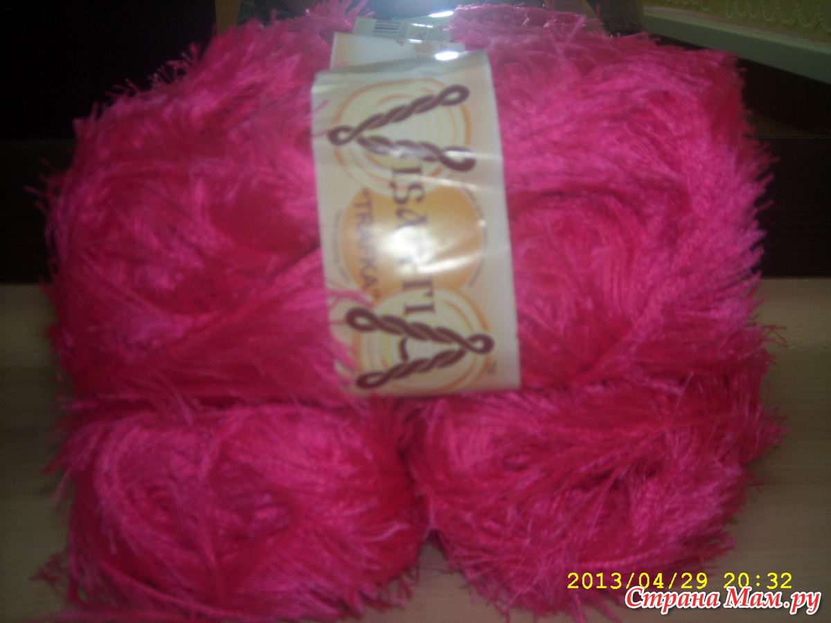 Потребуется пряжа "Травка" - 4 мотка (розовый цвет) и один моток белого цвета, у меня травка от Византии.