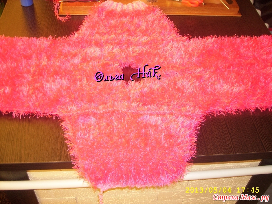 Теперь сшиваем все изделия, начинаем с плеч, потом разложим изделие, прикладываем рукава к проймам.