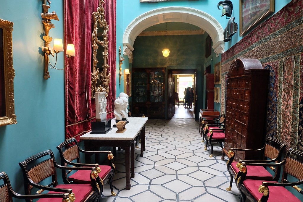 У нас есть возможность заглянуть в аристократическую резиденцию 19 века во всей красе и роскоши. Есть несколько комнат, которые можно увидеть из столовой, гостиной, читального зала, спален и т. Д. Из интерьеров также открывается вид на бесчисленные ценности, накопленные семьей.