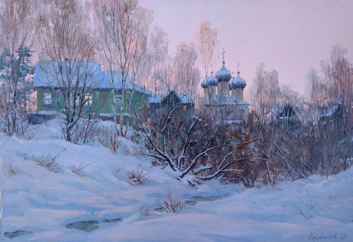 Несколько слово художнике. Вячеслав Анатольевич Чердаков родился в 1955 году в Раквере, тогда Эстонской ССР, ныне независимая Эстония. Однако его жизнь была связана с Ярославской землей. В 1970 году в Рыбинске художник окончил Детскую художественную школу, в 1978 году закончил Ярославское художественное училище. Основным направлением творчества являются пейзажи, причем большинство из них это виды природы, деревень и сел европейской части России. Давайте посмотрим его великолепные зимние пейзажи