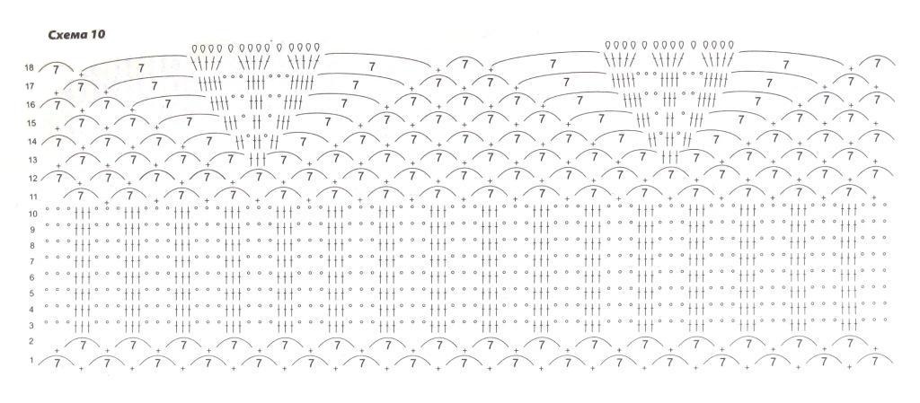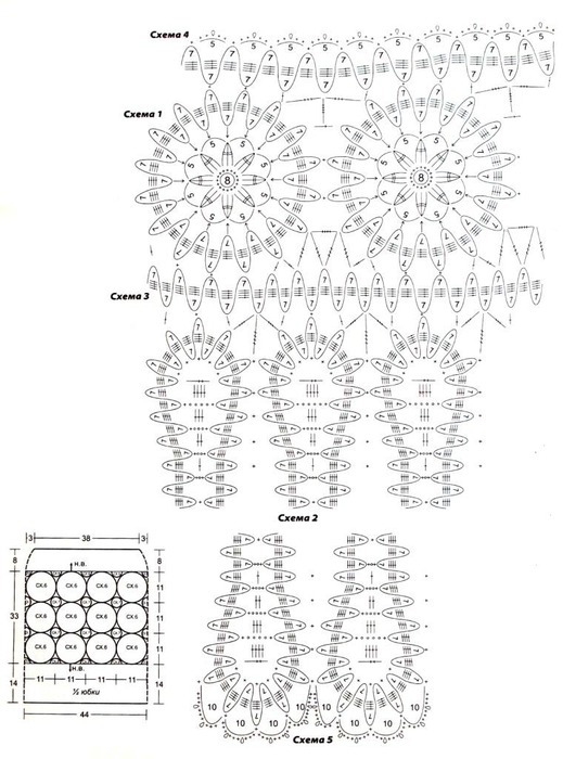 для юбки - круглый мотив по схеме6 и узоры по схемам 7,8,9 и 10.
