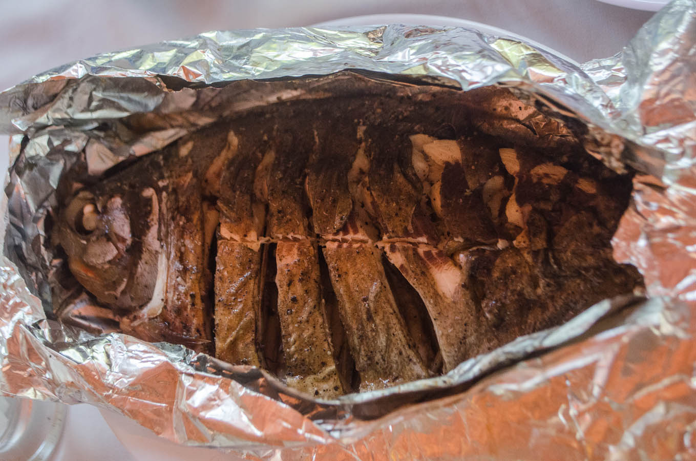 Ребята поймали штук 10 пираний, и нам местные приготовили вкуснейший обед, с ромом, водкой и вином. Пиранья в фольге, вкуснятина.