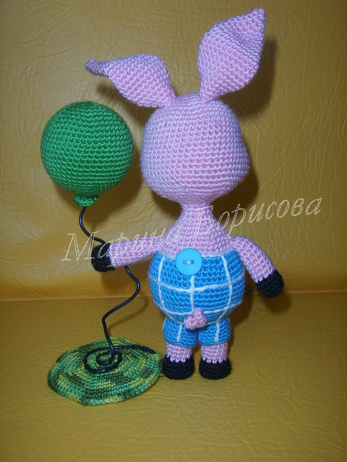 Если вам не хочется возиться с подставкой вы можете её не вязать. Для тех, кто хочет , чтобы Пятачок стоял, показываю, как это сделала я.