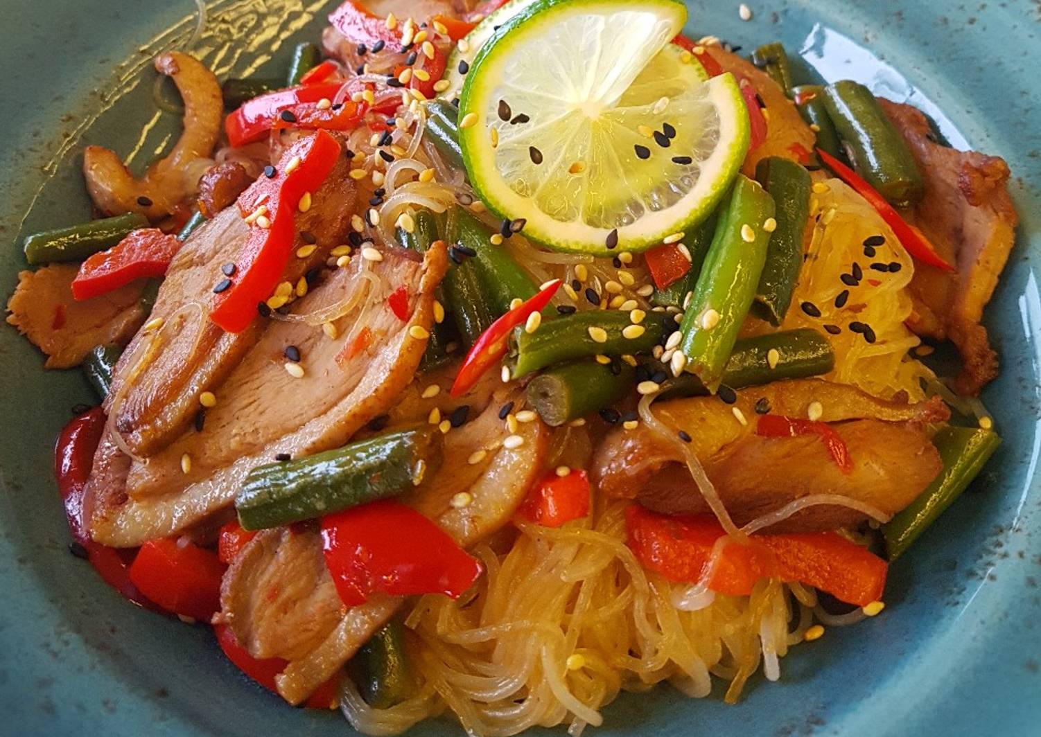 Я очень люблю добавлять в салат разные овощи.Очень люблю салат с фунчозой.