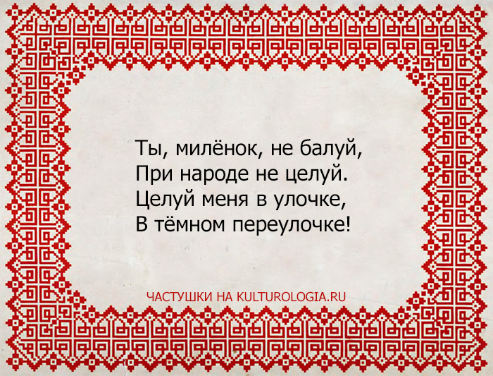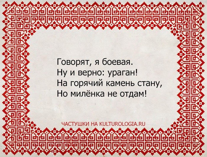 Как будто эхо из прошлого..., наверное частушки еще живут в деревнях, сёлах, в старых фильмах, а в городах уже не горланят)))