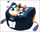 Женский головной убор в виде короны из чёрного шёлка с каркасом из плотной бумаги, подбитый ватой и украшенный сверху различными деталями декора.