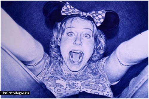 На самом деле художник работает в жанре фотореализма, но без фотоаппарата. Помните, мы уже писали о подобных "фотографиях" кошек, выполненных простым карандашом? Только наш герой запечатлевает своих "жертв" самой обычной шариковой ручкой марки Bic.