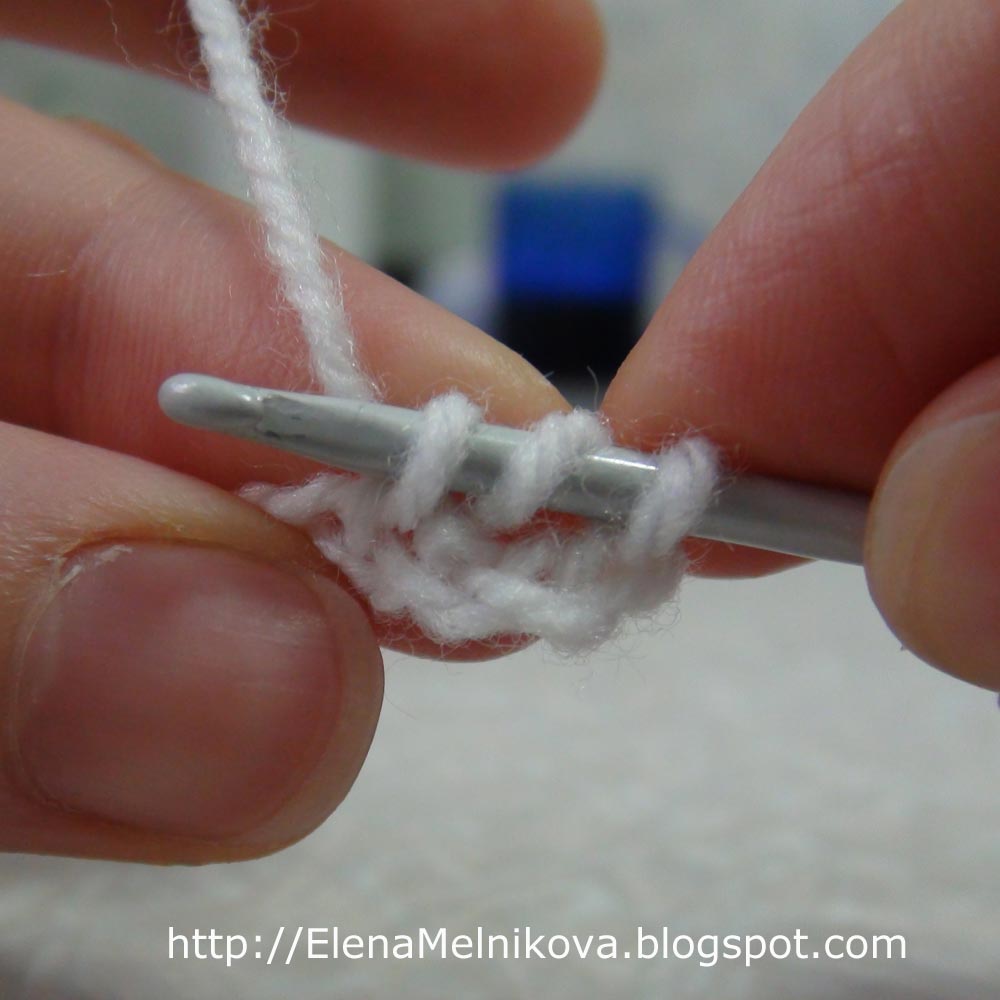 Снова крючок в первый столбик ряда (не в воздушную петлю).