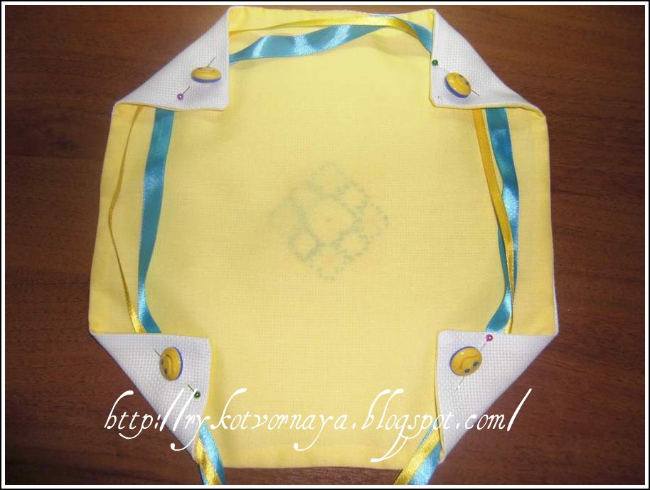 5. Закалываем булавочками уголки. Смотрим все ли ровно и красиво.