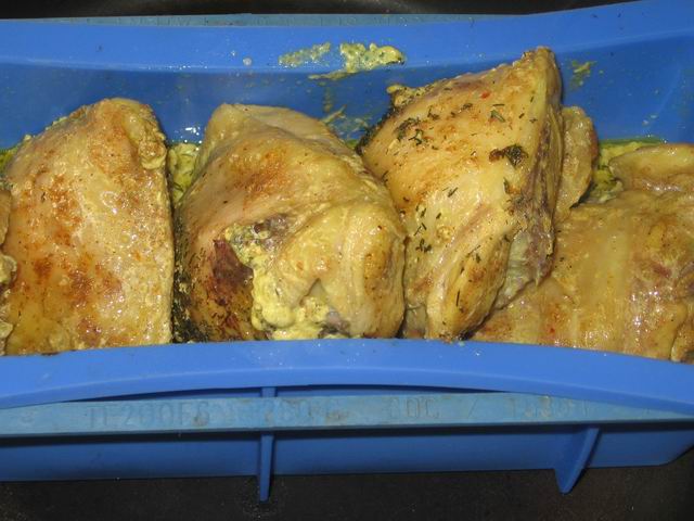 Ставим в духовку томиться на 1 час, тепрература духовки 200 градусов.. Через 30 минут бёдрышки переворачиваем.