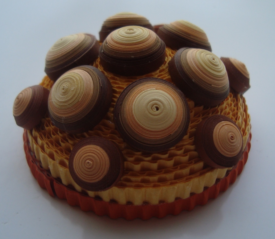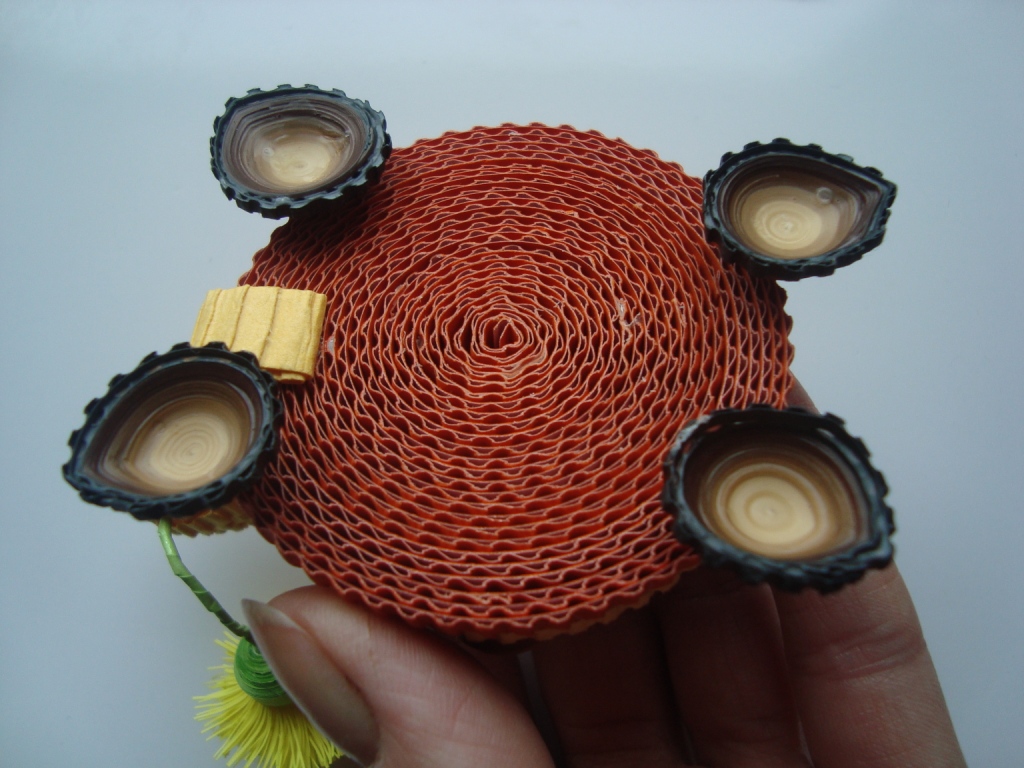 На большей мисочке начинаем украшение панциря. Тут уже полный пейп-арт! Я только шишечки из ХФ сформировала. Использовала все остатки накрученных салфеточных нитей http://stranamasterov.ru/node/308701 - это как крутить нити. Рисунок узора размечала по грунтовке маркером.