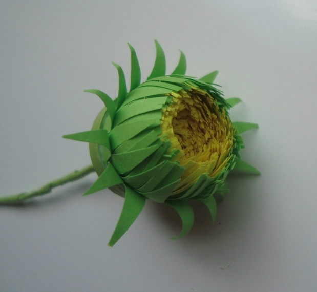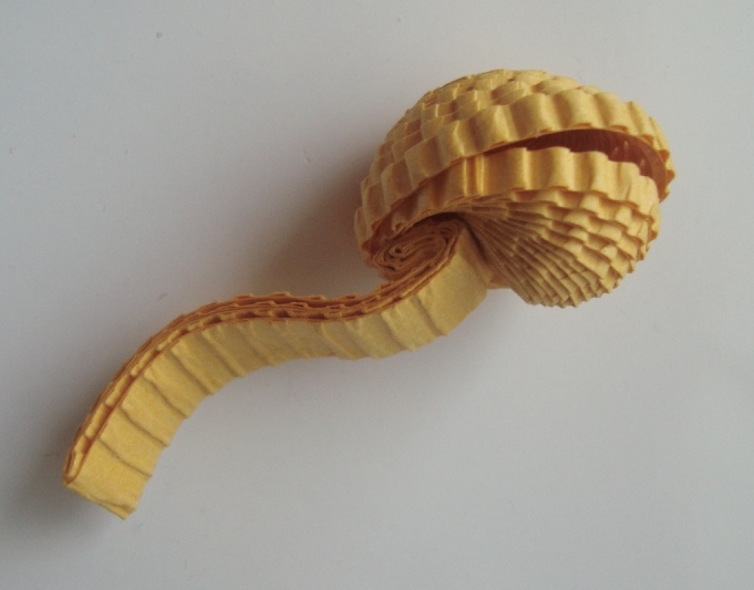 Нужен ещё панцирь , поддерживающий голову черепахи...Решила не утяжелять ещё и панцирем, и сделала его из пенопластового судочка для упаковки печенья. Отрезала ножом уголок по размеру и наклеила на ПВА, все щели "зашпаклевала" мокрой туалетной бумагой, а сверху небольшим слоем ХФ.