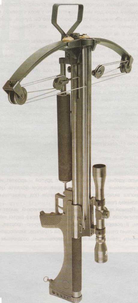 Проще говоря, рекурсивные плечи обеспечивают почти постоянно большое усилие на тетиве и одновременно повышают скорость вылета стрелы. Конечно, за все приходится платить и изготовителю, которому приходится усложнять технологию изготовления, и арбалетчику, который должен применять прочные стрелы весом не меньше определенного минимума, чтобы не сломать арбалет и не порвать тетиву. Минимальный вес стрел для этого арбалета 25 граммов, максимальный определяется здравым смыслом.