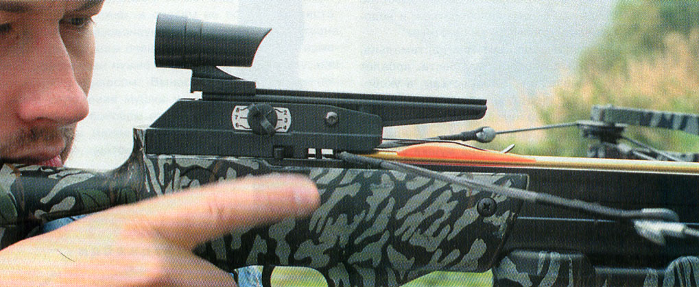Оптический прицел этих недостатков не имеет, а самое главное - стрелять с выносом становится легко и приятно, что может быть полезно на охоте, когда арбалет пристрелян на одно расстояние, а цель появилась на другом.