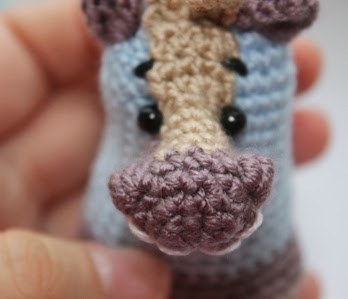 4) 4 ССН с одной вершиной (ноздря), 4 сбн (эти петли я вяжу другим цветом - полоска по середине носа. Нить основного цвета не обрываем!), 4ССН с одной вершиной, 8 сбн