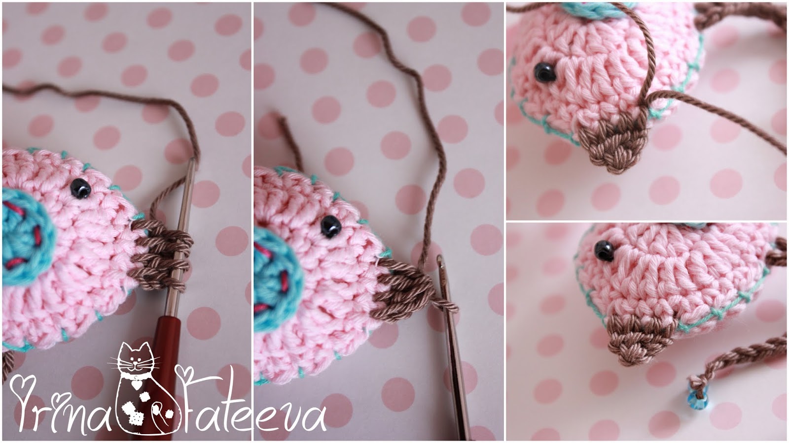 В месте вязания клюва вытягиваем нить