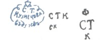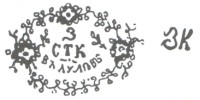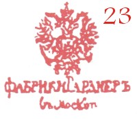 1-я марка зеленая, 2 и 3 -вдавленные или черные. Ставились на изделиях из фарфора и фаянса. Фабрика закрылась в конце 70-х гг.