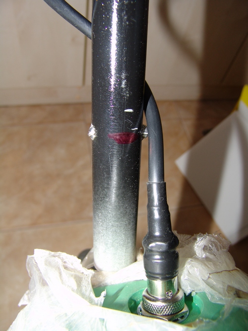 14. С помощью пластмассового болта для крепления крышек унитаза (купил накануне - 12 рублей за пару) закрепил NEL на новоиспечённой штанге.