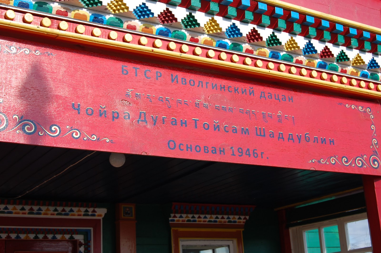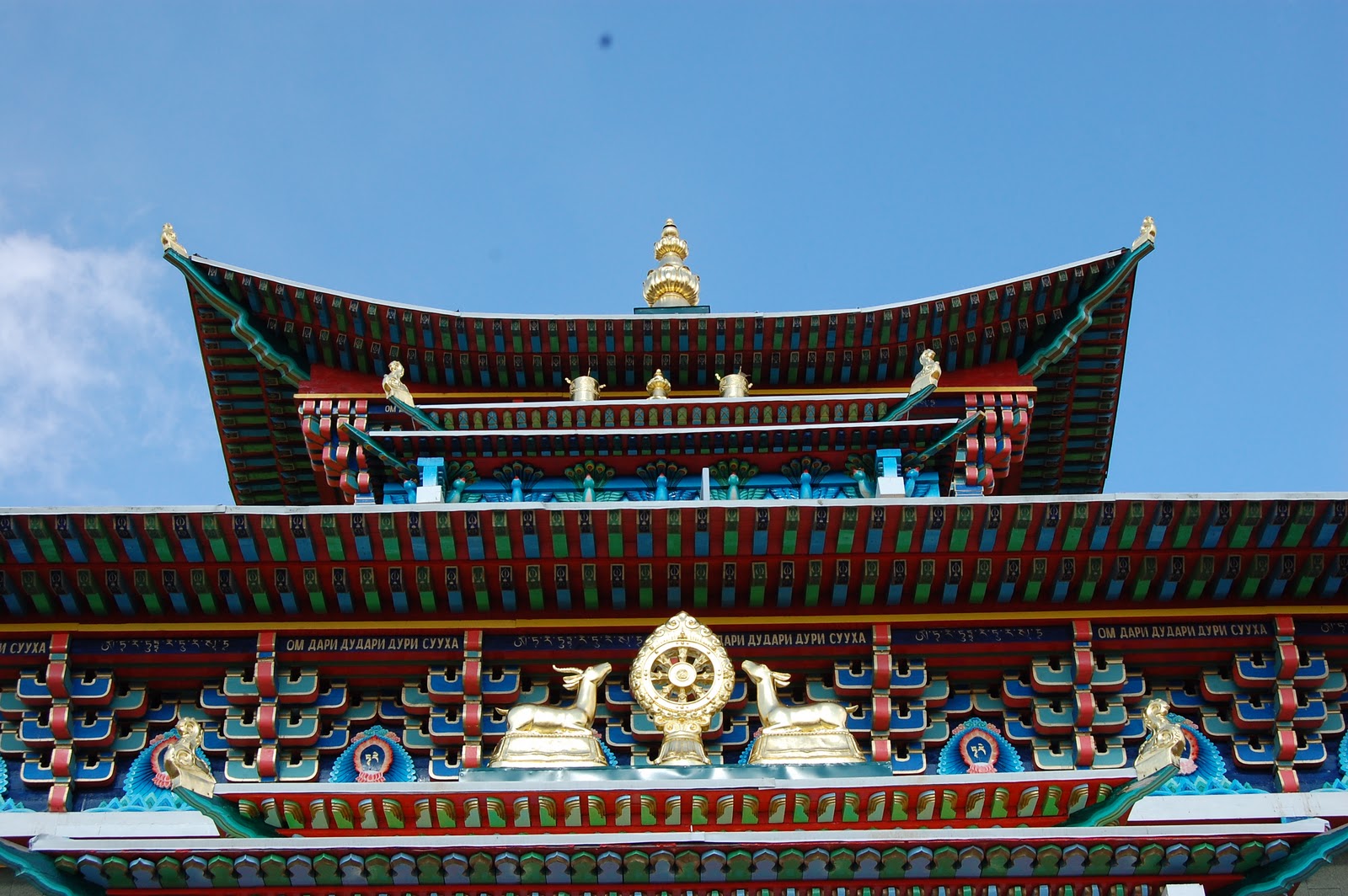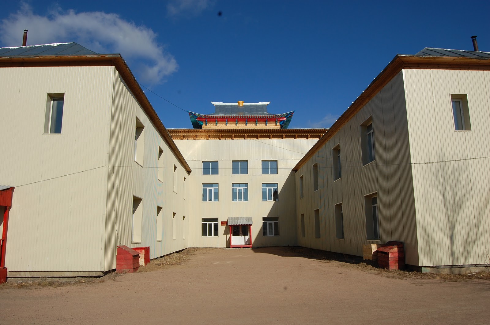 Фото выше, это главный Цогчен дуган (дуган - храм), и является соборным дуганом, то есть посвящен целому сонму богов, лам и будд. Поэтому, все главные службы проводят здесь.