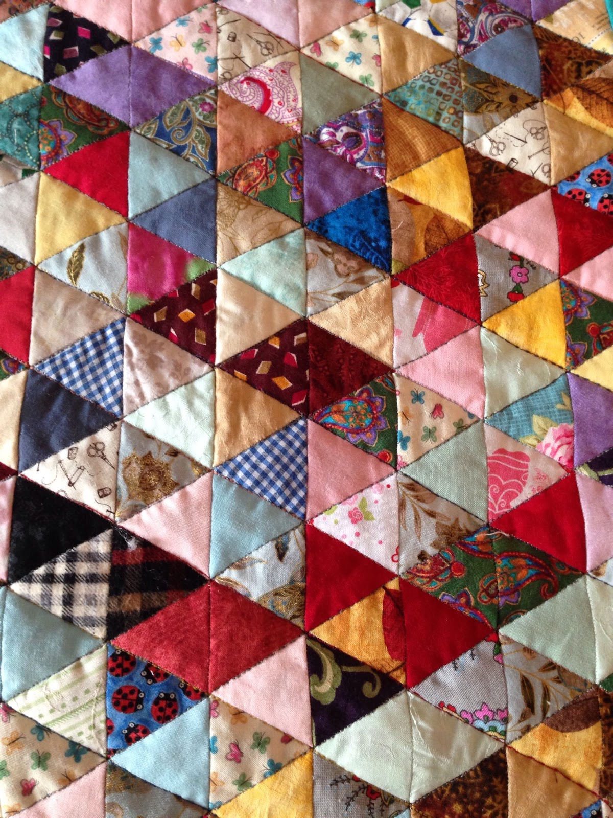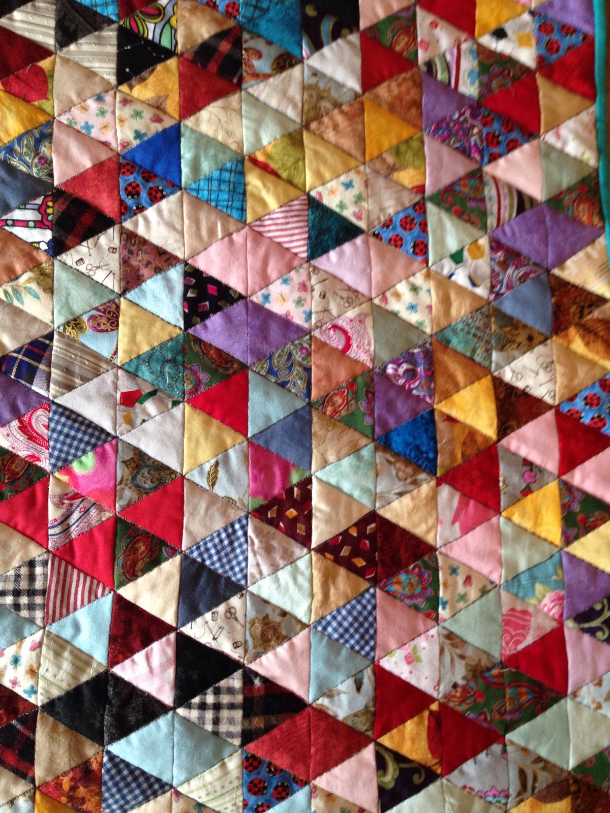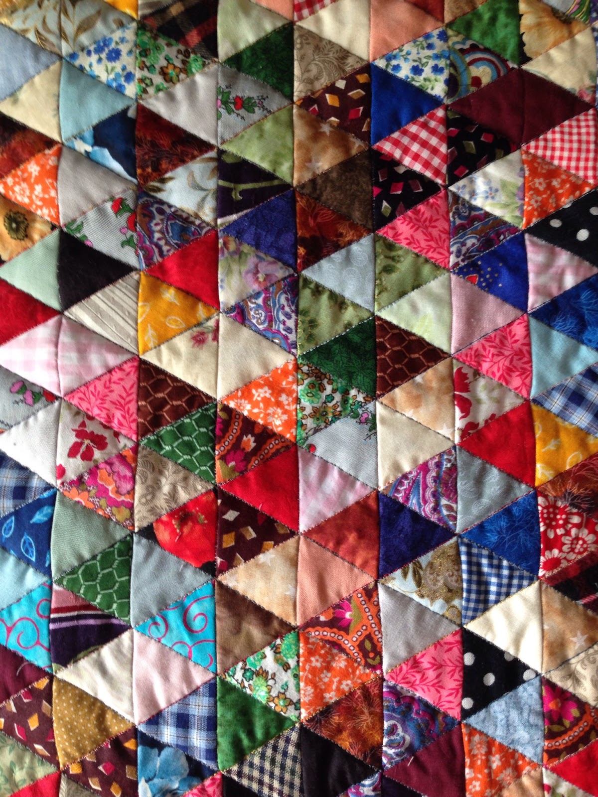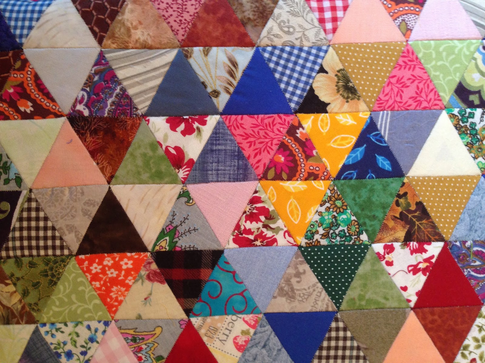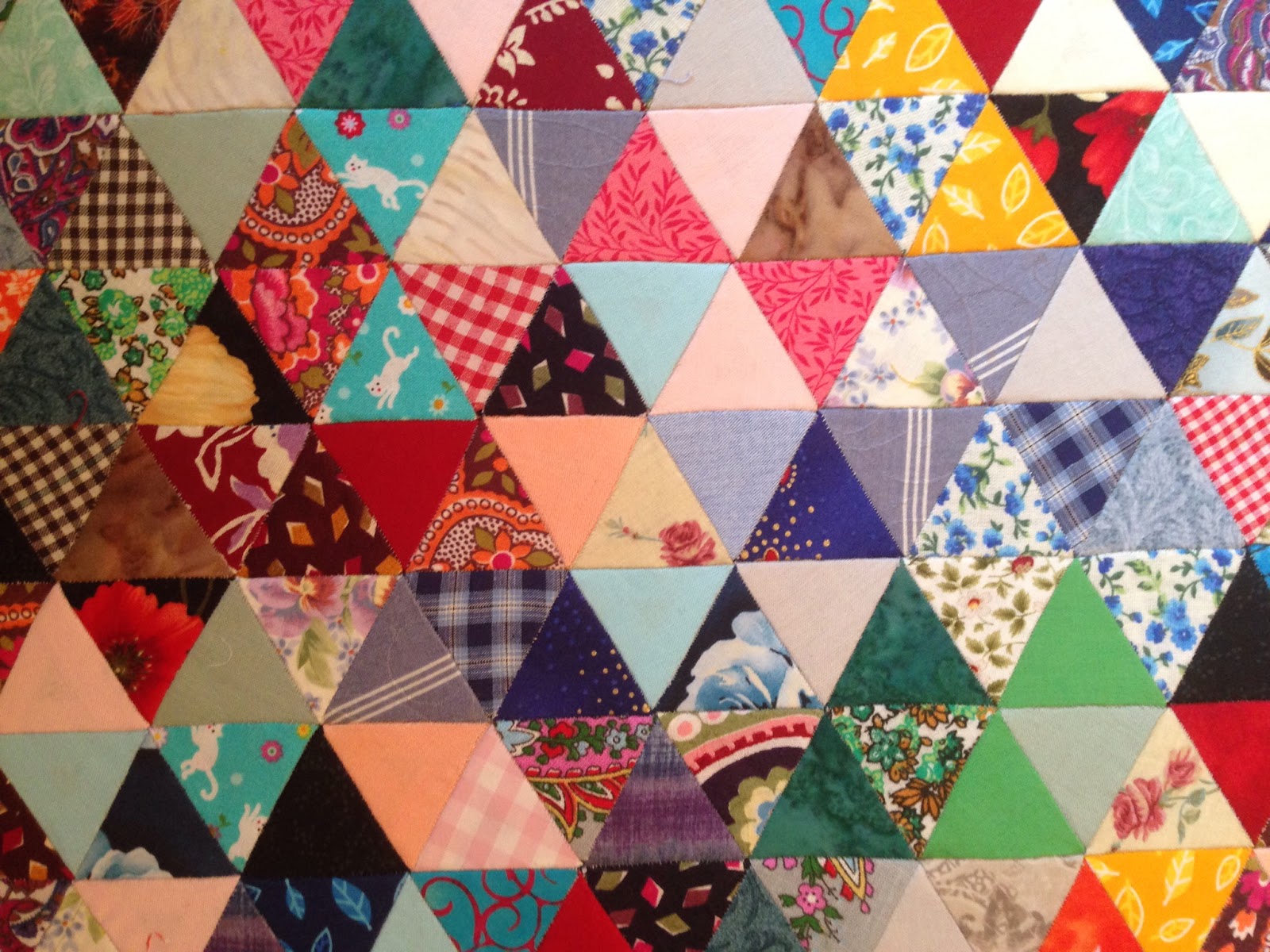 Равносторонний треугольник - это один из атомарных элементов лоскутного шитья. Помимо моего хаоса можно сшить полотна "с закономерностями". А вообще-то вариантов рисунков из равносторонних треугольников - тьмы и тьмы.