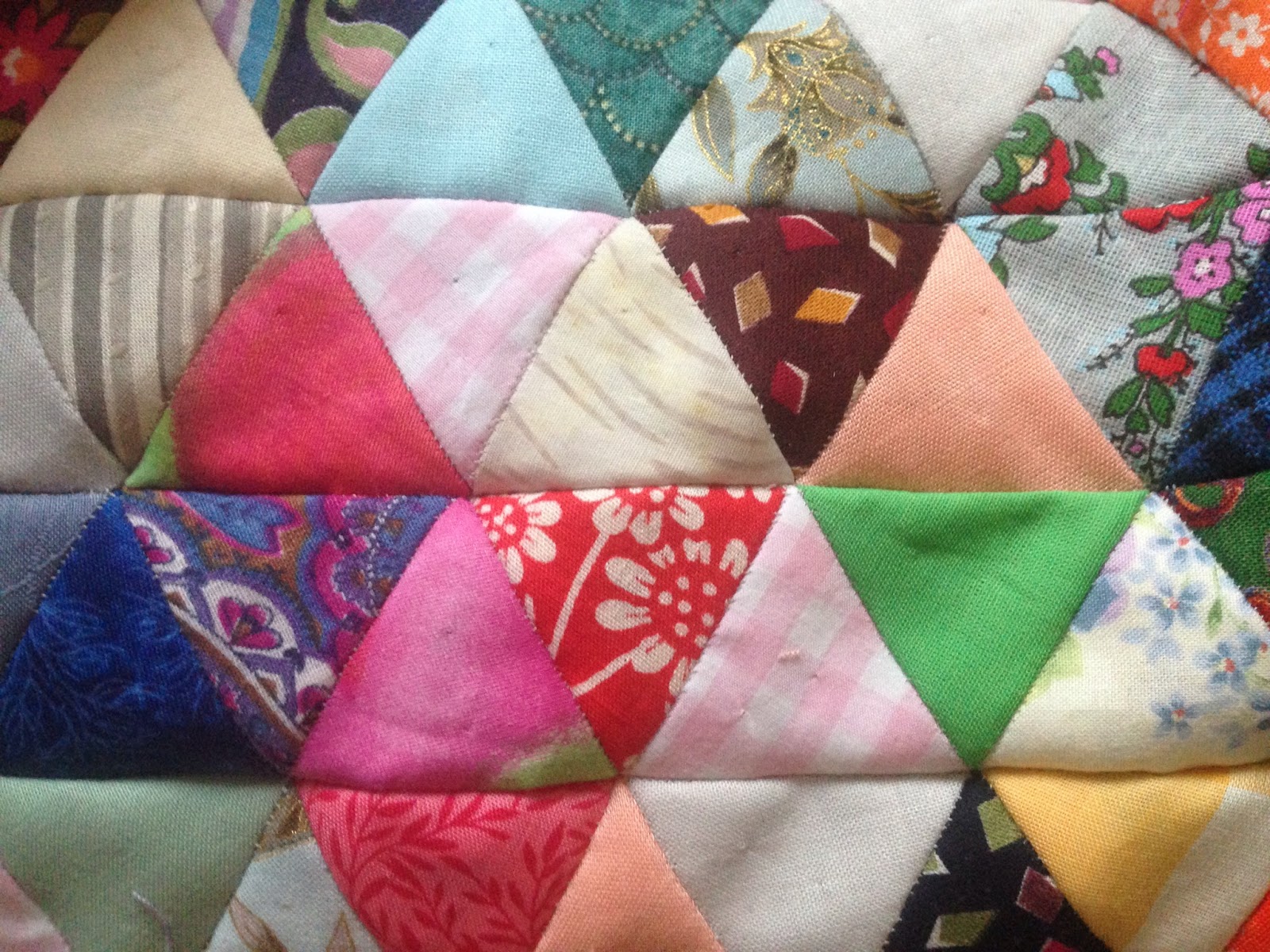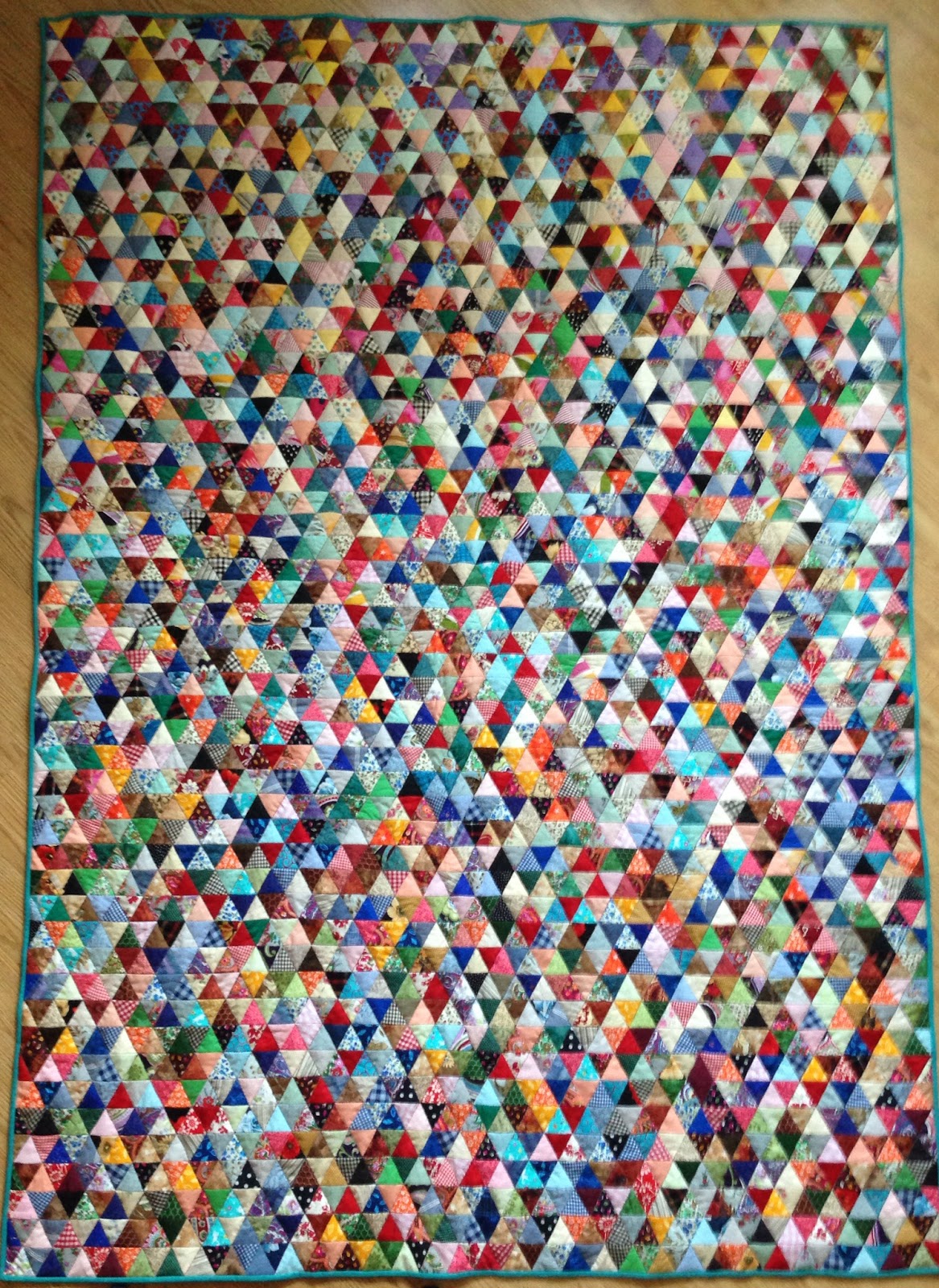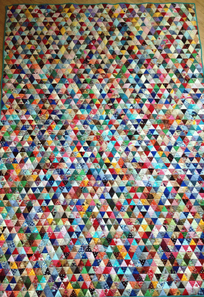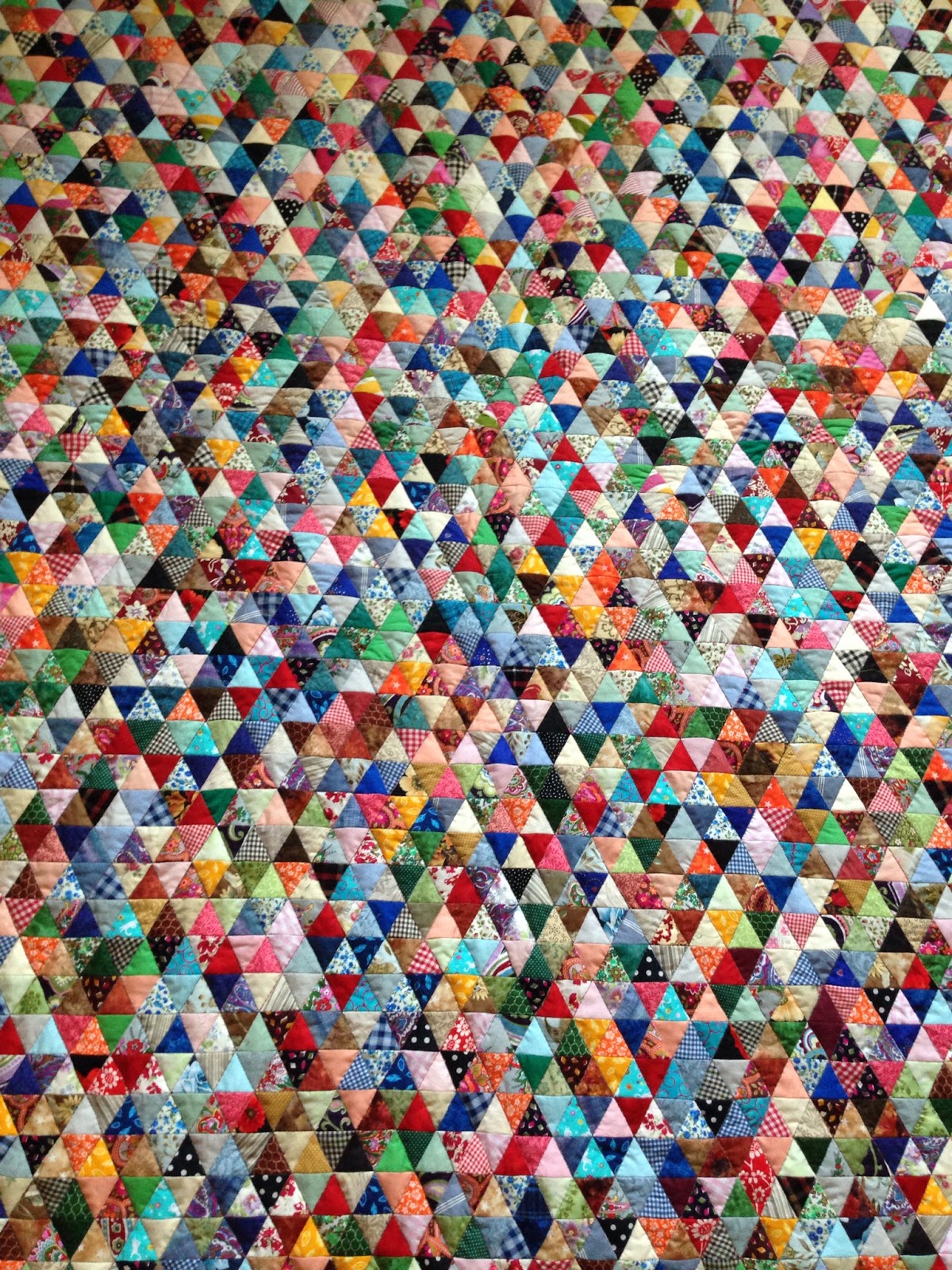 Равносторонний треугольник - это один из атомарных элементов лоскутного шитья. Помимо моего хаоса можно сшить полотна "с закономерностями". А вообще-то вариантов рисунков из равносторонних треугольников - тьмы и тьмы.