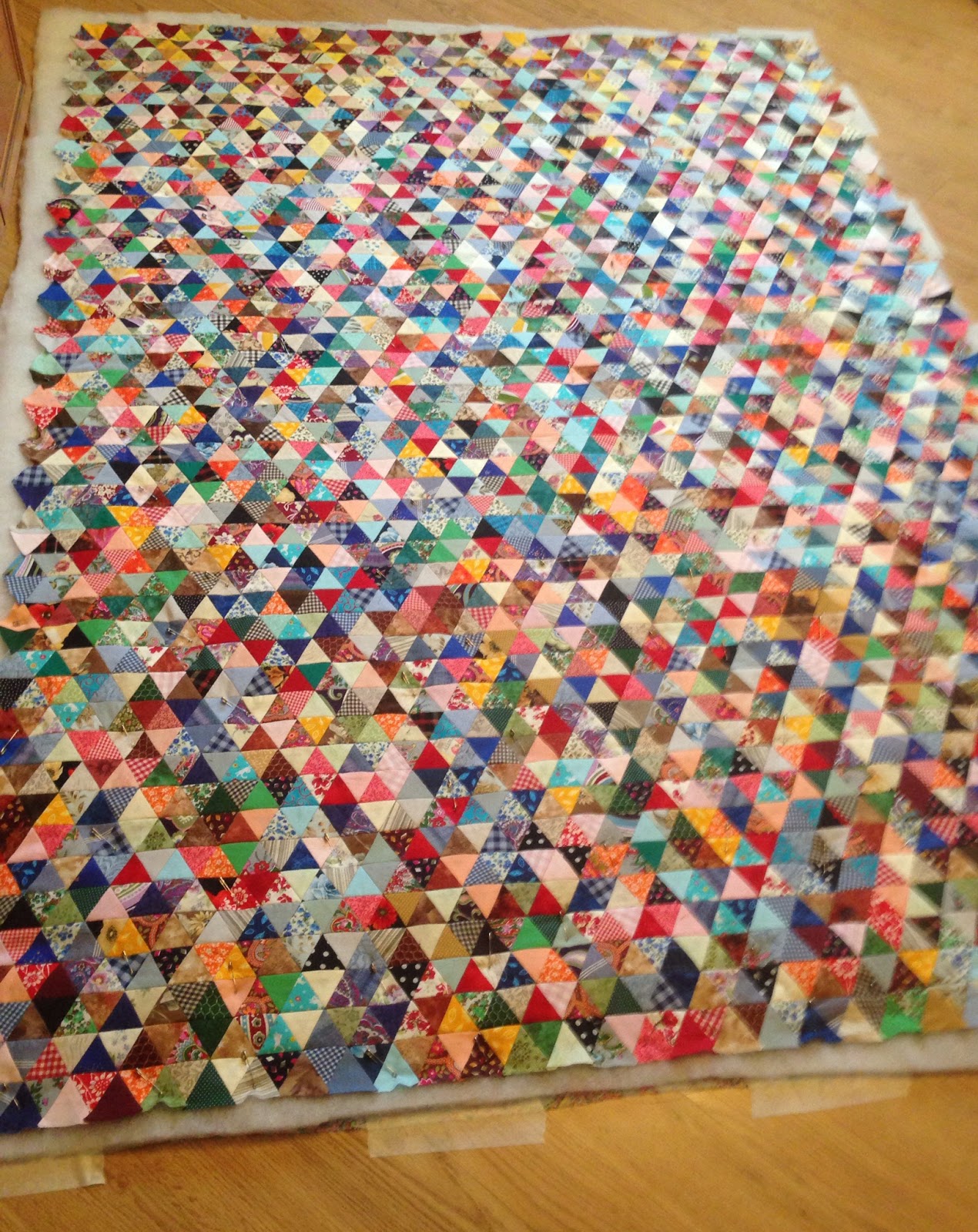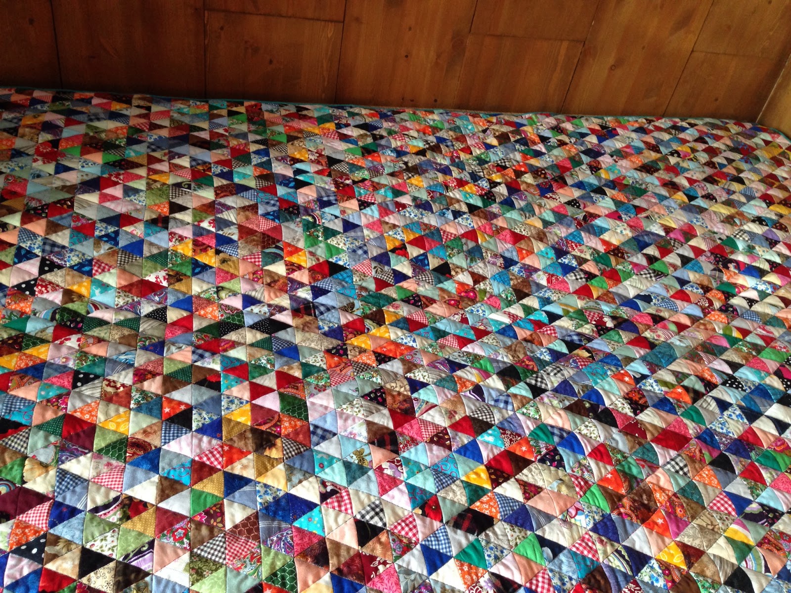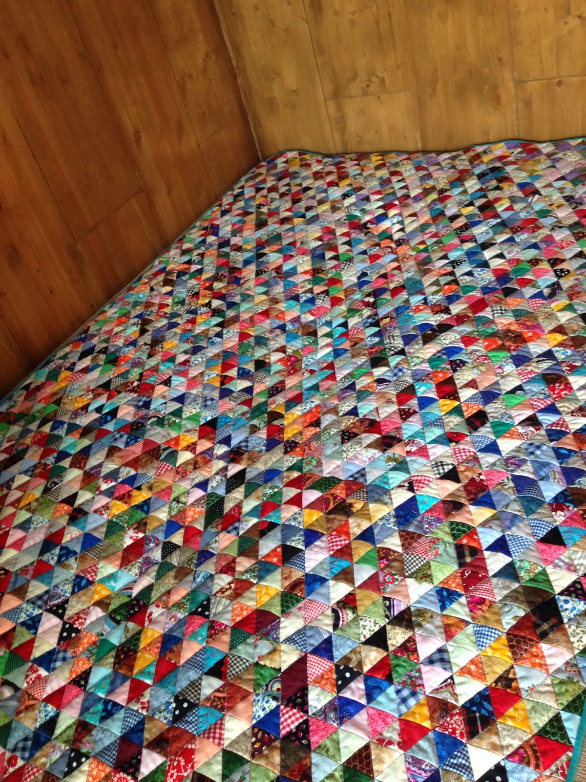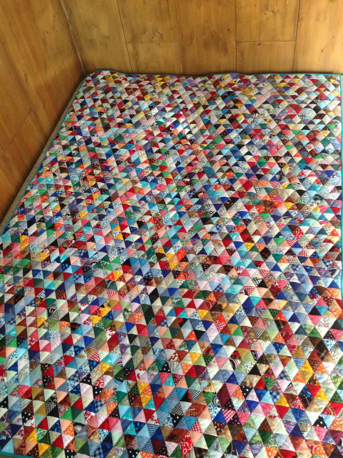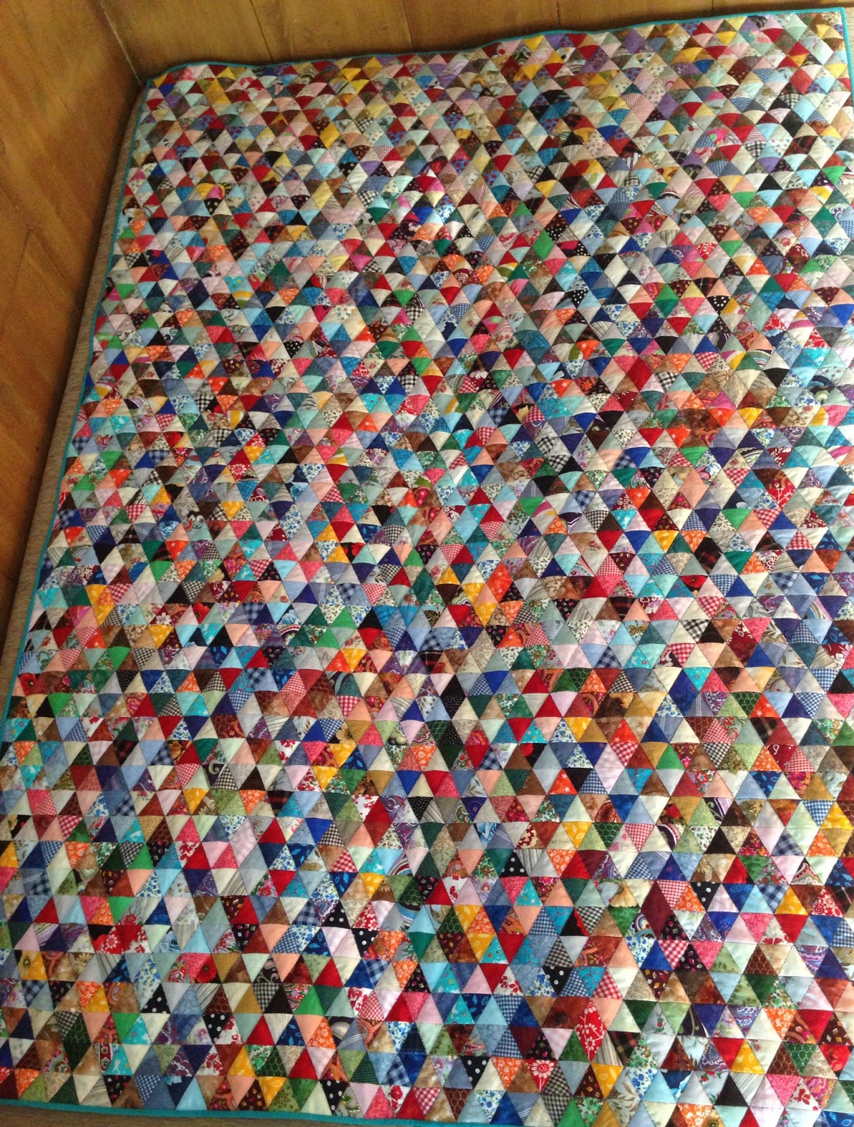 Равносторонний треугольник - это один из атомарных элементов лоскутного шитья. Помимо моего хаоса можно сшить полотна "с закономерностями". А вообще-то вариантов рисунков из равносторонних треугольников - тьмы и тьмы.