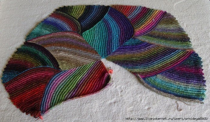 Когда у нас наберётся 30 незакрытых петель, с той стороны, где мы прибавляли, мы начинаем убавлять ЗАКРЫВАЯ по одной петле (закрываем, иначе там потом образуются дырочки). То есть, мы убавляем уже с двух сторон (с одной стороны закрываем, с другой - нет) пока у нас не останется одна петля.