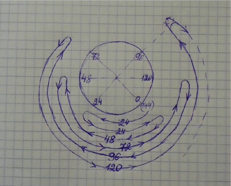 -Марина, я тут нарисовала схемку когда разбиралась с укороченными рядами. Я правильно поняла как вяжутся они? И бока будут на 48 и 120 петлях и петли для проймы будут от них считаться?