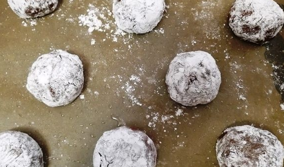 Выложите шарики на противень, застеленный пергаментной бумагой.