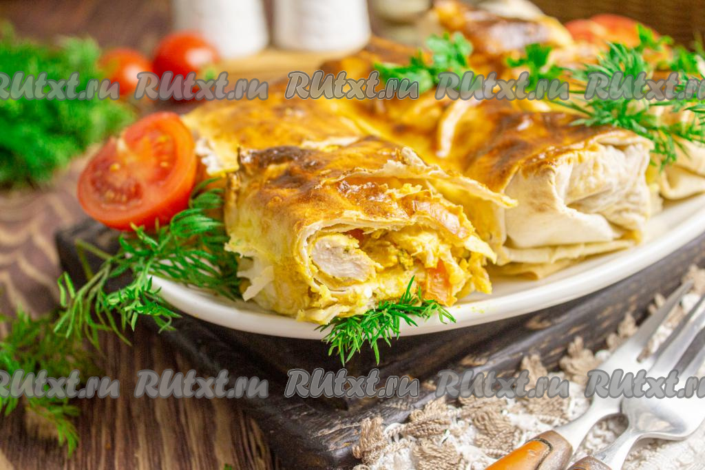 Предлагаю приготовить простое и вкусное блюдо - куриное филе, запечённое в лаваше в духовке. Этот рецепт отлично подойдёт когда совсем мало времени на готовку или когда "гости на пороге". Для начинки вместо куриного филе можно взять филе куриных бёдер, получится ещё сочнее. Хотя и с куриным филе блюдо получается достаточно сочным за счёт добавления помидоров и сметаны. Кстати, сметану можно, по желанию, заменить на майонез, греческий йогурт или густой кефир. Специи для начинки возьмите те, которые вам больше нравятся. Я использовала стандартный набор специй для курицы, в составе которого: куркума, сладкая паприка, карри, чеснок сушённый и смесь перцев. Приготовьте блюдо по этому рецепту и оно, наверняка, придётся вам по вкусу!