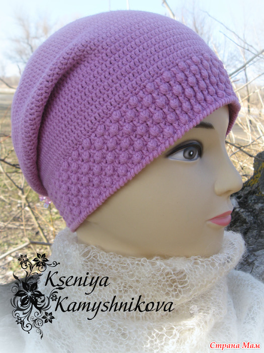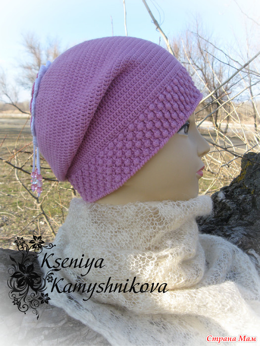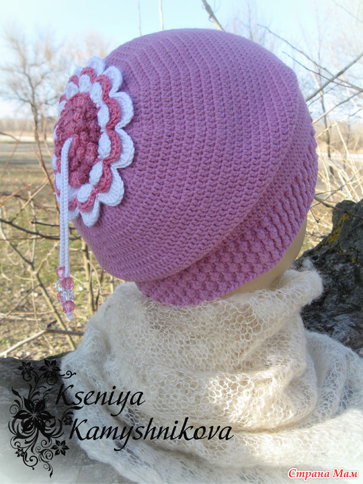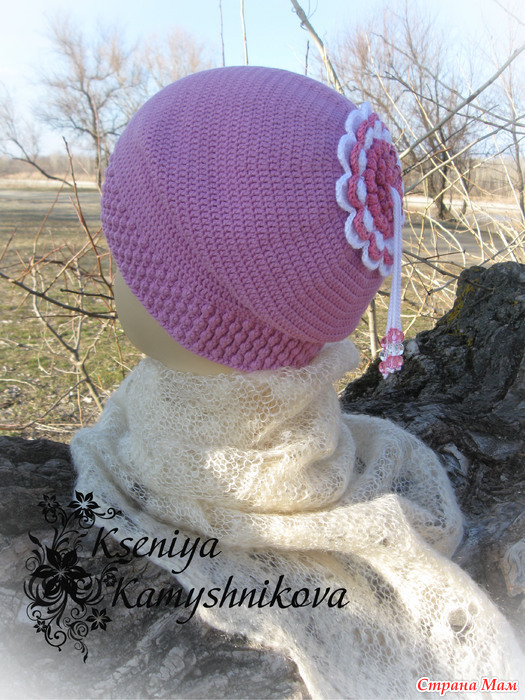 Здравствуйте, рукодельницы! Доченьке на весну связала шапочку, пряжа Ализе Коттон голд, крючок № 2,5. Очень понравилось из них вязать крючком-получается мягко, не стоит "колом", как у меня обычно бывает