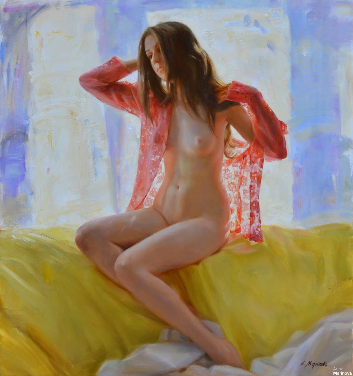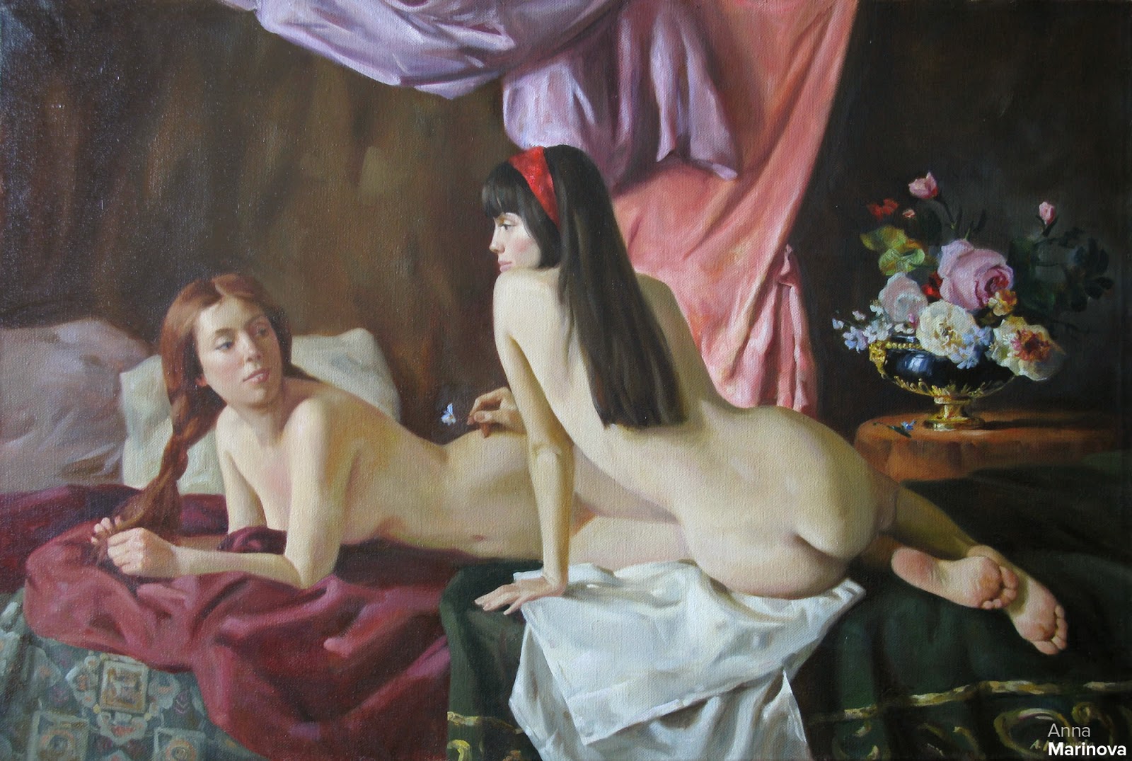 Картины выполнены в стиле НЮ. По стилю, картины очень похожи на стиль работ американского акварелиста Стива Хэнкса- обнаженное тело, как совершенство природной красоты, несущее эстетическое наслаждение красотой, грацией, нежной неги женского тела.