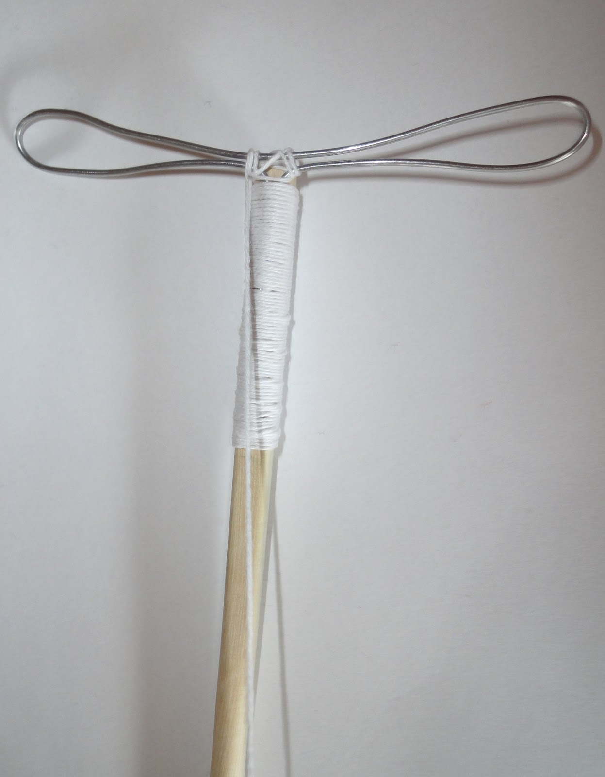 Прикрепляем резинку на талию к кукле и потом надеваем куклу на палку.