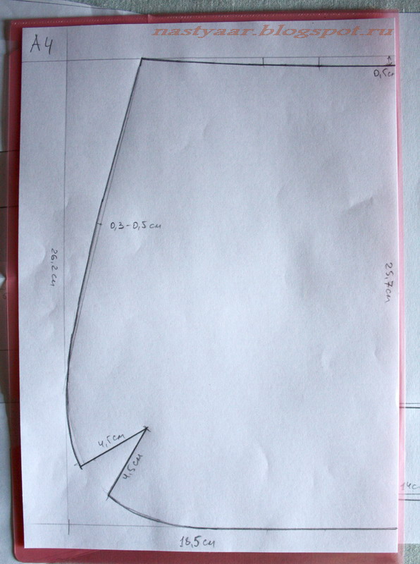 Я не стала проводить просто прямую, это сильно увеличит выкройку в высоту (на фото выше как раз просто прямая)