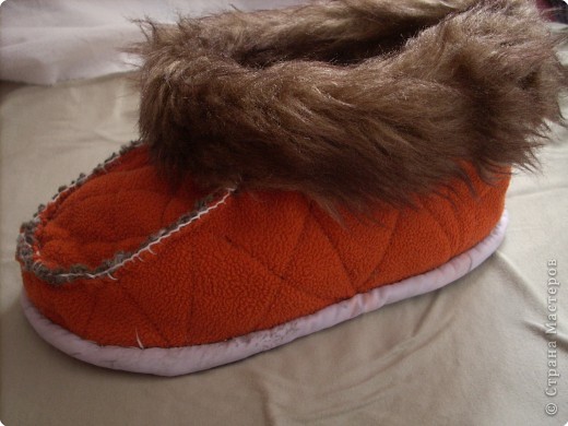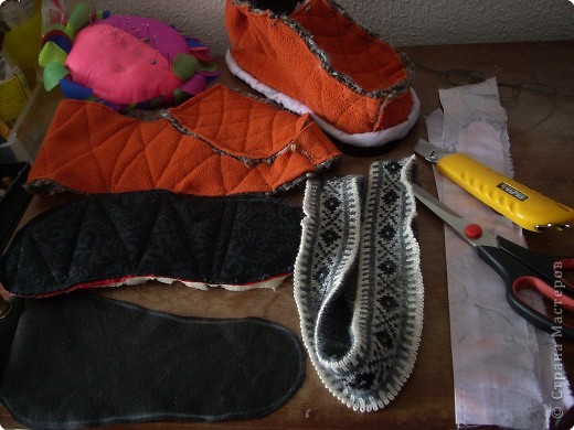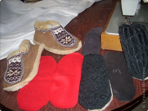 А это я приготовила шить ещё одну пару тёплых тапочек.Только вверху обшивала новым искусственным мехом.