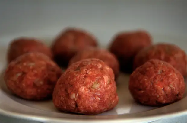 Базовый, он же главный ингредиент блюда — фарш. Для шведских фрикаделек обычно берется фарш из говядины и свинины, иногда также с добавлением телятины. Как и для бургеров, для фрикаделек лучше всего подходит отруб с жирком: лопаточно-шейный у говядины и свиное плечо. По умолчанию фарш используется в равных пропорциях. Однако стоит учесть, что смесь фарша в соотношении 50:50 дает рыхлую или мягкую консистенцию. Мясные шарики получаются сочными и ароматными, но их нельзя, к примеру, подать как закуску, просто надев на зубочистки. Для придания более упругой текстуры говяжий и свиной фарш смешивают в пропорции 2:1. Тогда фрикадельки получаются плотными и эластичными. Вымешивается фарш вместе с другими ингредиентами в комбайне. Делать это следует тщательно, но не настолько долго, чтобы излишнее трение не нагрело и не растопило жир.