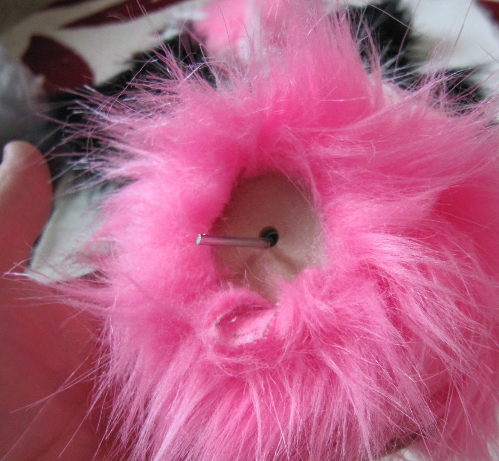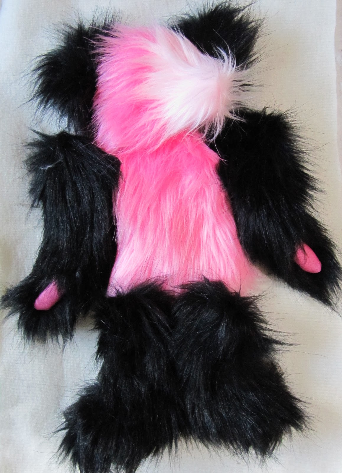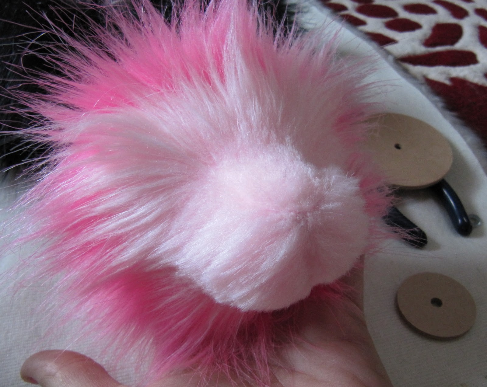 Мы решили сделать ее в стиле панда, используя наш черный и розовый из искусственного меха (кокосовый лед и Туз пик). Мы не смешивают эти две ткани вместе, прежде чем, ни было, мы сделали этот узор из искусственного меха раньше, поэтому он был немного эксперимент!