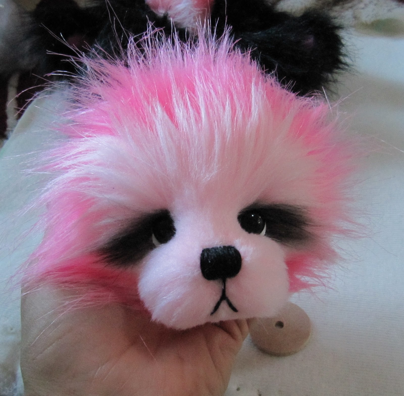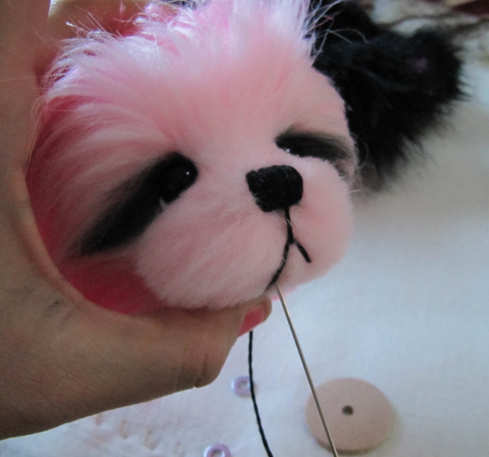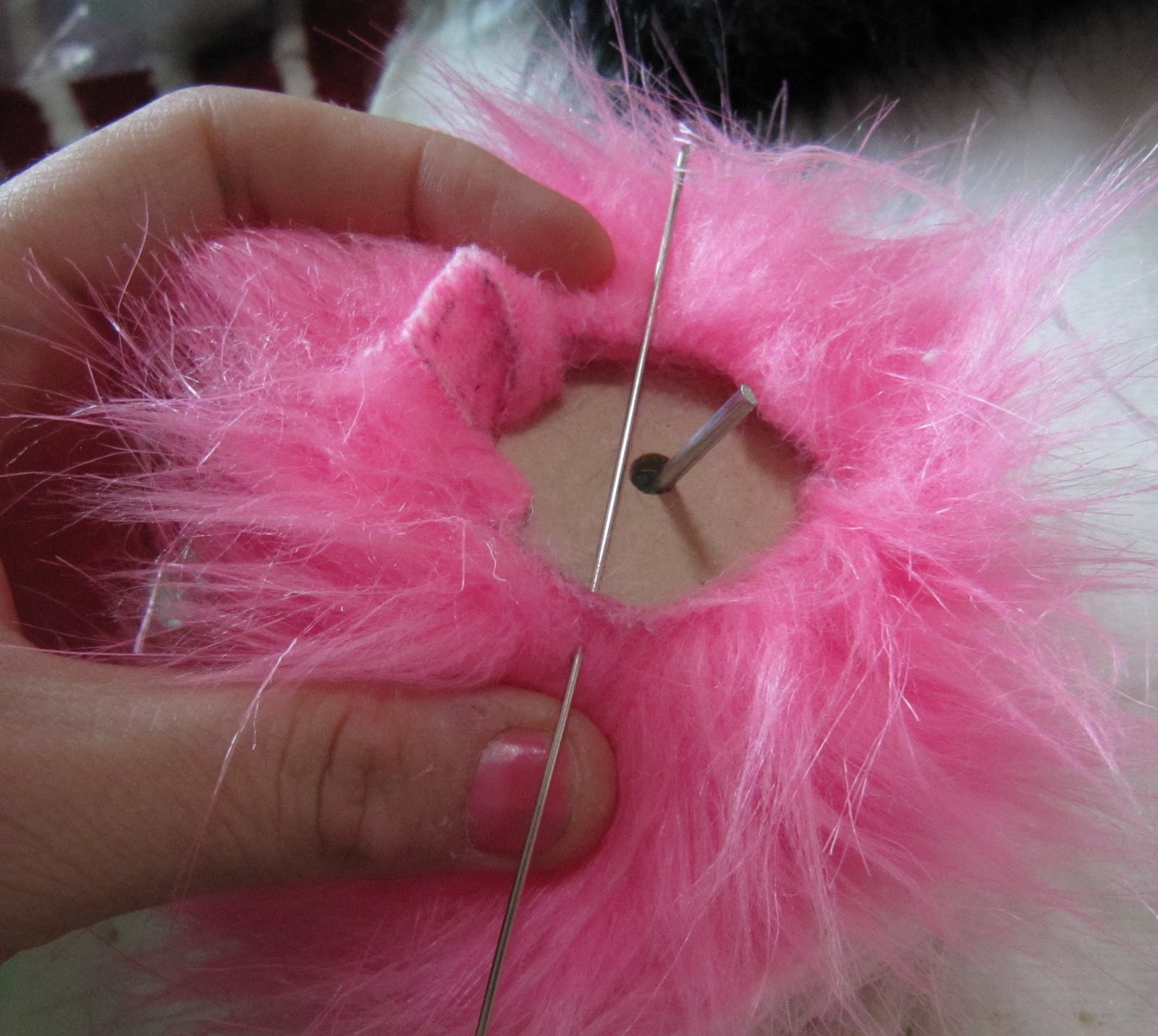 Мы решили сделать ее в стиле панда, используя наш черный и розовый из искусственного меха (кокосовый лед и Туз пик). Мы не смешивают эти две ткани вместе, прежде чем, ни было, мы сделали этот узор из искусственного меха раньше, поэтому он был немного эксперимент!