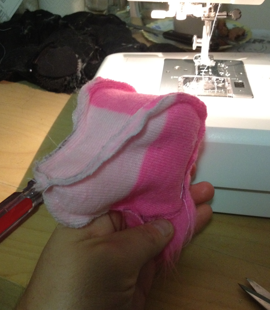 Я шью 99% моих медведей на моя верная машина. Медведи также идеально подходит для шитья, если вы предпочитаете, как часто можно получить гораздо больше контроля над формы таким образом. На фото выше изображена стороне головные уборы пришит кусок ластовицей. Затем на фото ниже показана та же голова повернута лицевой стороной наружу.