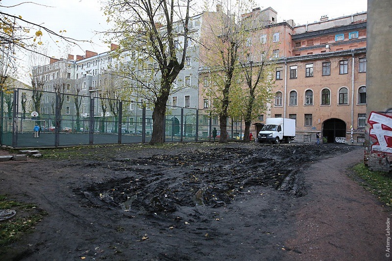 Наклонные поверхности наиболее эффективны в качестве говноисточников, но подойдут и плоские карьеры. Видите следы шин? Так говно зачерпывают и переносят на дороги. Санкт-Петербург.