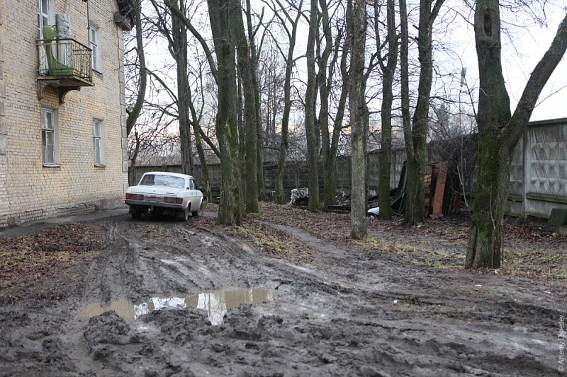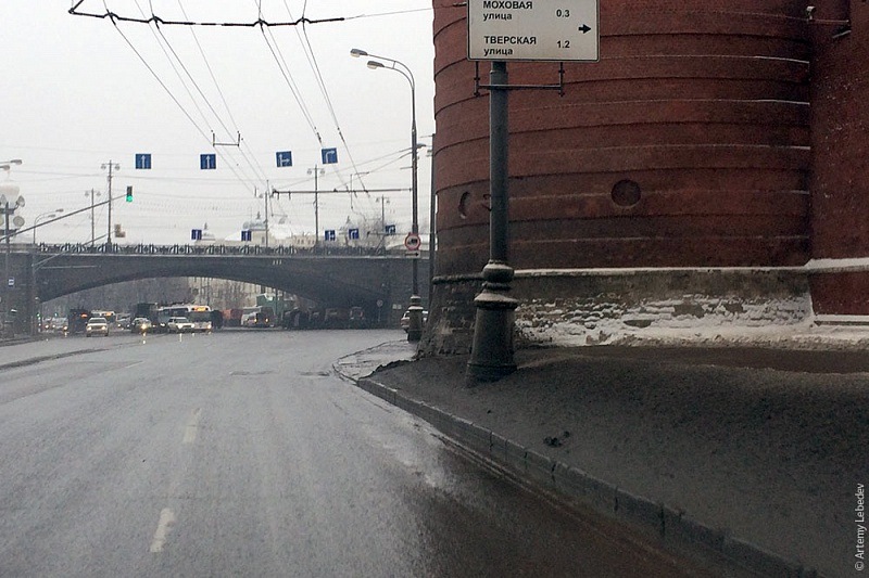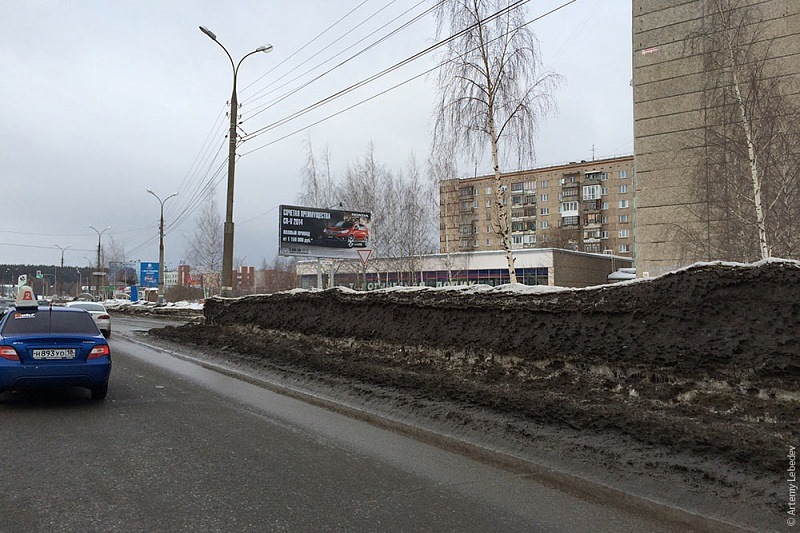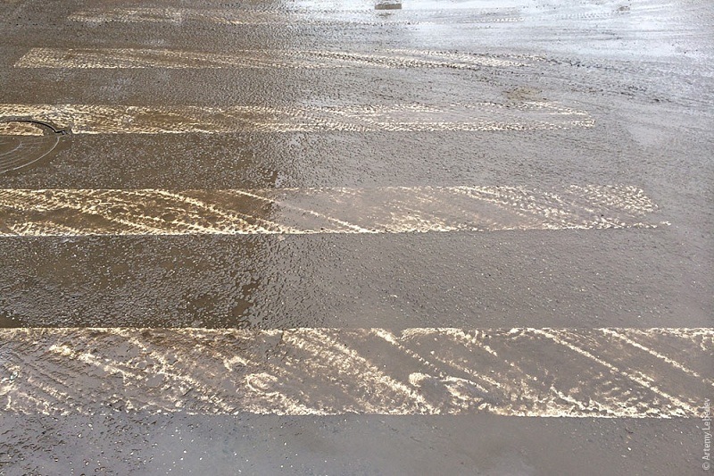 Поэтому тут на помощь нам приходят силы природы. В Европейской части России, столь привычной нам по говну на улицах, земля поступает на дороги при помощи осадков (тающий снег, дождь). Много воды не нужно, чтобы слякоть потекла ручьями, которые автомобили разнесут дальше по всем дорогам. Вот как выглядит типичный источник говна: