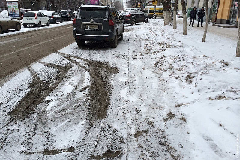 Выпавший снежок ненадолго прикрывает слой дорожного говна, но быстро тает. Саратов.