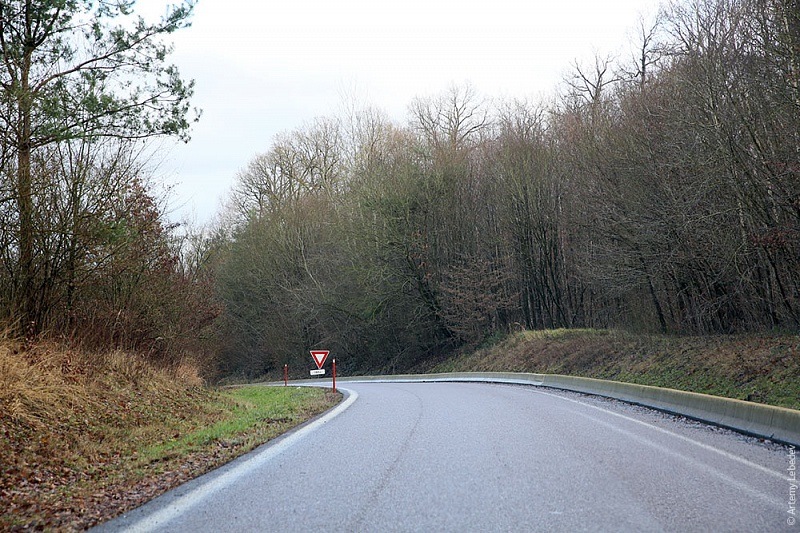 Франция. Обратите внимание, что сторона дороги, откуда говно может поступать, отгорожена стенкой. А другая сторона, куда стекает вода под наклоном, ничем не отгорожена.