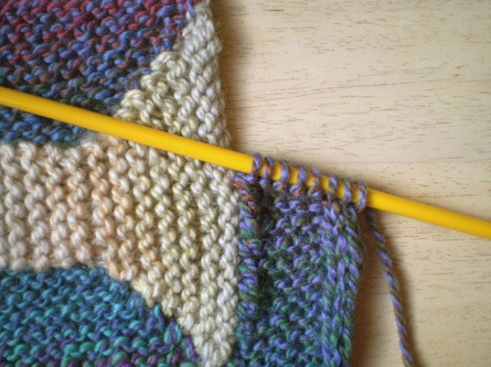 Взять светлые нитки и набрать на спицу 20 петель. Вязать платочной вязкой убирая в каждом ряду по 2 петли. Когда останется 8 петель связать 15 рядов. Затем начать прибавлять по 2 петли в каждом ряду пока их не станет 20. Закройте петли и оставьте нитку длиной ок. 25 см. Одна катушка готова.